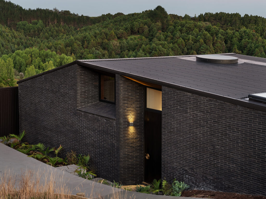 This new house sits atop a hill on a stunning rural site north of Auckland